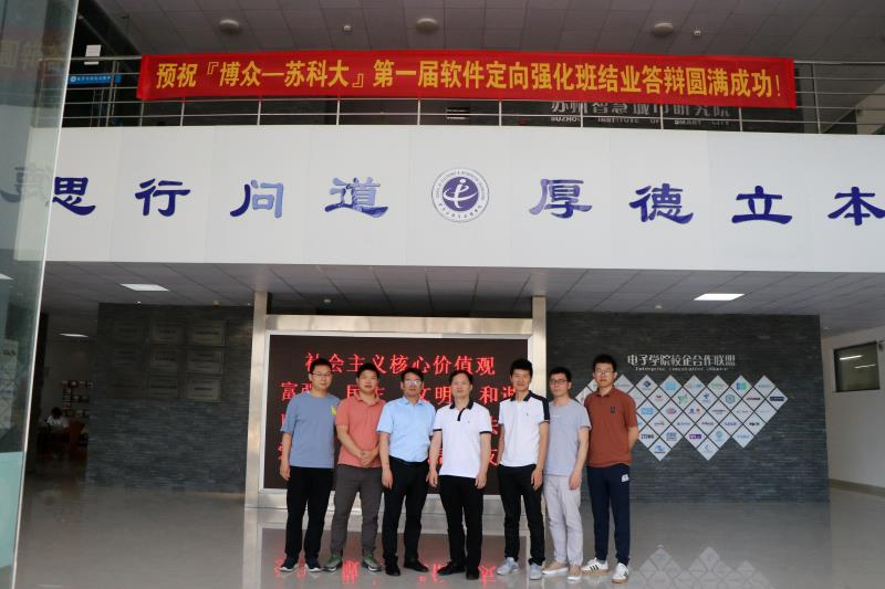 、吴江区、高新区等领导共同见证下“强化班”举行了开班仪式;博众工程师全程参加教学,学员先后经过了校内理论强化、企业现场实践强化等系列环节后,结合企业课题进入毕业设计环节。2021年6月5日,博众-苏科大第一届工业软件强化班答辩会成功举行。公司结合学员日常情况、理论和实践项目完成情况、答辩等进行了量化评价并按照预先确定的能力标准确定学员薪资,6月8日已经向所有学员发放了录用通知。