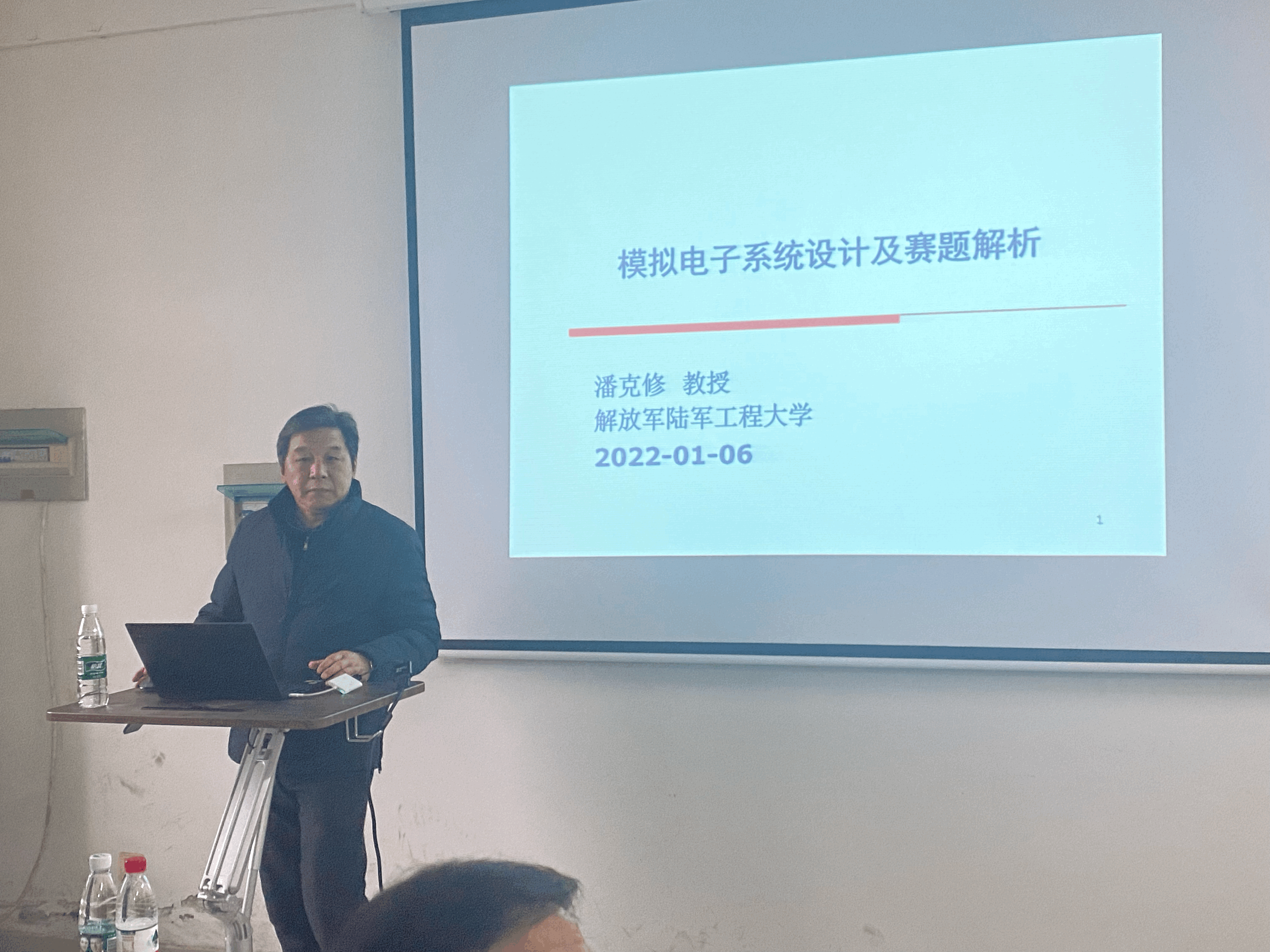 徐志军教授、潘克修教授、朱正伟教授分别围绕“模拟电子系统设计及赛题解析”“学科竞赛的组织与管理”“评委视角下的学生作品”三项主题进行了系列讲解。徐志军教授针对电子竞赛培训重点任务、运算放大器、信号调理电路、赛题解析、培训要求等方面做了详细介绍,他指出,同学们要夯实理论基础、增强技能从而深入拓展实践;朱正伟教授列举常州大学学科竞赛的学生与教师的激励措施,学科竞赛的组织与管理,电子设计大赛训练与比赛时学生常见问题等方面做了详细阐述;潘克修教授着重对疫情常态化下学生作品在线、学生作品测评常见问题、技术报告规范等方面进行具体解析。