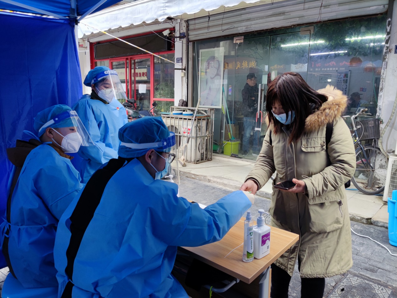 首批4名教师党员前往姑苏区金阊街道金门社区和相城区北桥街道庄基村开展志愿服务,支援核酸检测工作。清晨6点,教师党员们早已到达核酸检测现场,负责人员引导,信息登记、秩序维护等工作。“请大家戴好口罩,间隔一米,有序排队!” 他们不惧寒意、冲锋在前,热心指引居民前往检测点,维持好现场秩序,耐心回答居民提出的各类问题,充分发挥党员先锋模范作用,用实际行动践行初心使命。