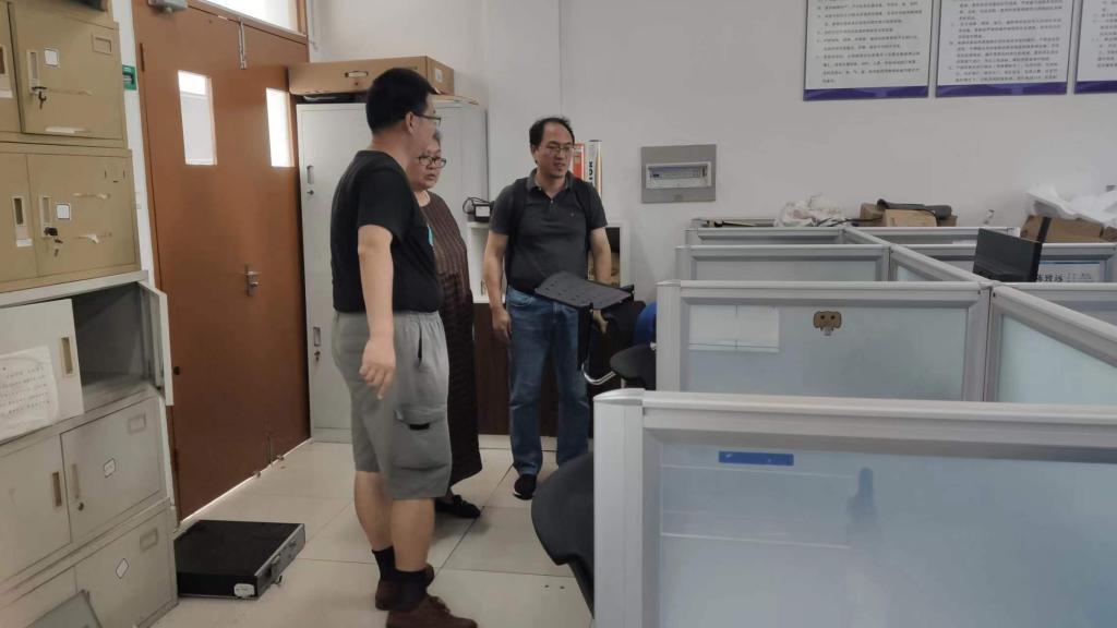 检查小组着重对电子楼实验室及可能存在的安全隐患区域开展了全面无死角检查,尤其对近期施工相关区域的门窗、水电等隐患因素进行了详细检查。细致确认了实验室内的电源是否正常,检查教师及研究生工作室用电情况、物品摆放,并逐一确认相关责任人,并对检查中发现的废弃物品、个人物品堆放不整洁,要求相关人员限期整改。