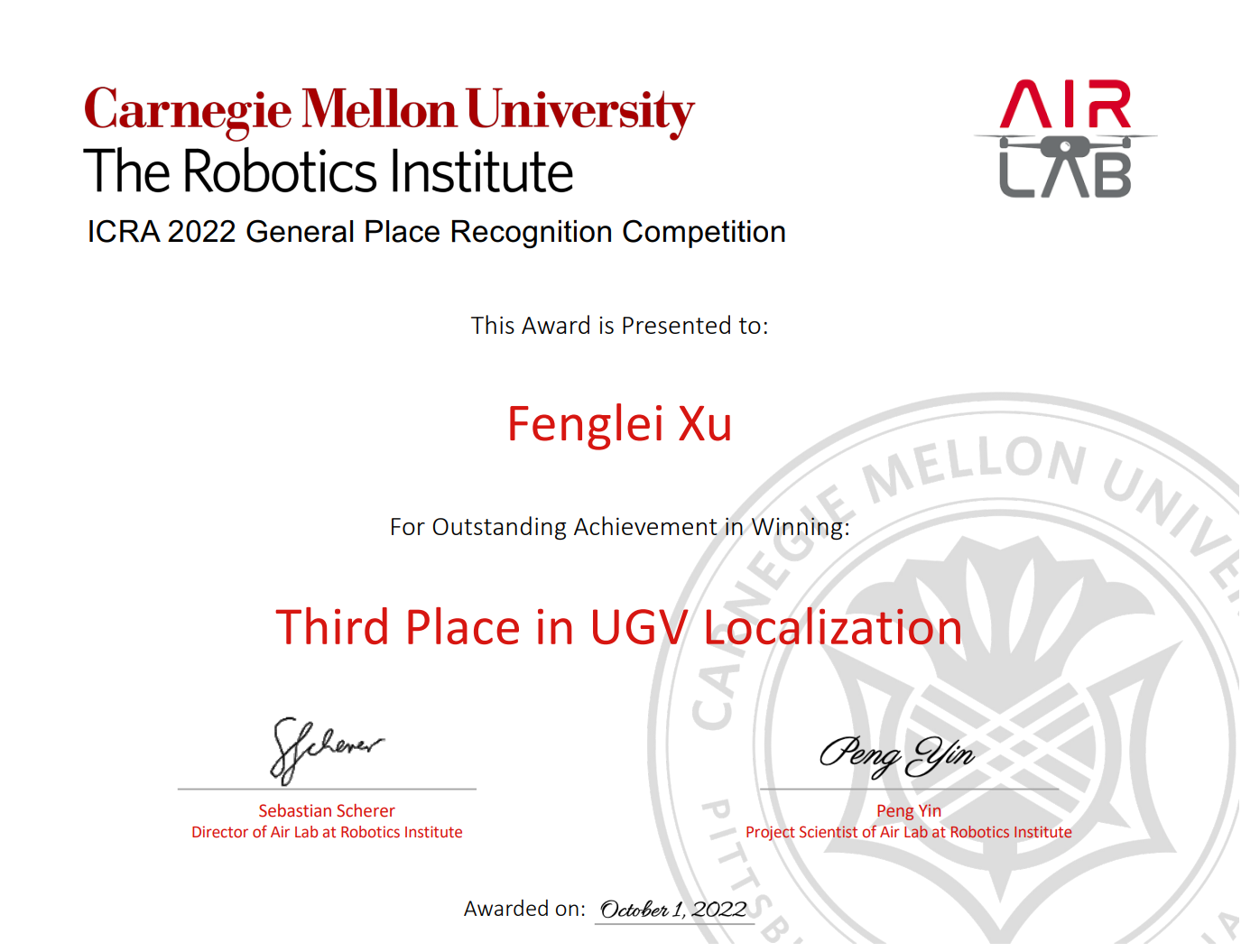 科研团队在ICRA 2022城市规模无人地面系统定位赛中获第三名。