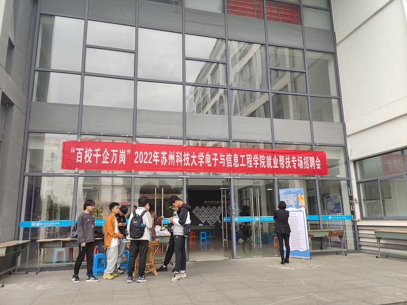 为全面贯彻党的二十大精神,促进高质量充分就业,11月9日下午于电子楼大厅举办“百校千企万岗”2022年大学生就业帮扶行动“送岗直通车”苏州科技大学专场活动,此次活动共邀请到25家苏州企业近800个岗位,共吸引500名毕业生参加。