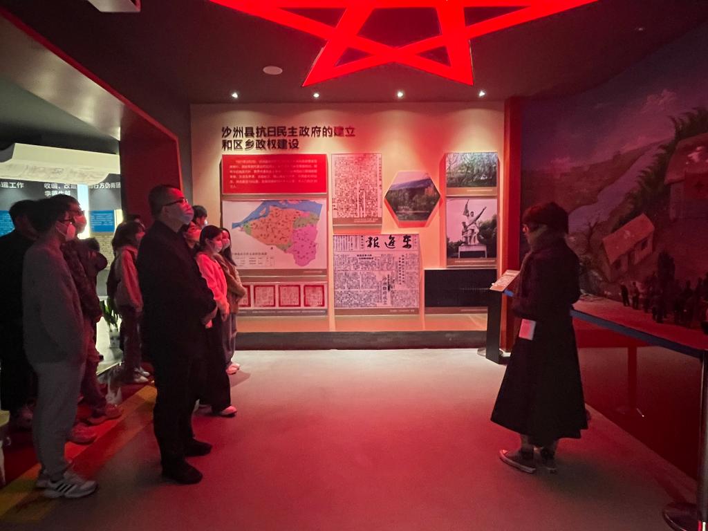 研究生党支部全体党员首先参观了沙洲县抗日民主政府纪念馆。纪念馆分为中华怒吼、国耻家恨、“江抗”东进、众志成城、浴血奋战、百折不挠、沙洲光复、名录8个部分,学生党员仔细聆听讲解员的介绍,认真观看馆内的实物、照片和文字介绍,深入了解革命先辈的光荣事迹,感动于革命先烈的英勇与忠诚。纪念馆内,研究生党支部书记带领支部全体党员重温入党誓词。