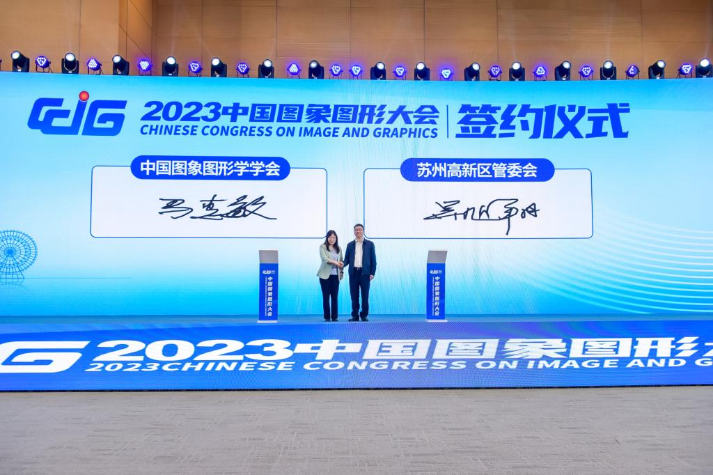 中国图象图形学学会与苏州高新区管委会举行了战略合作协议签约仪式,马惠敏和苏州高新区管委会吴旭翔副主任代表双方签约。