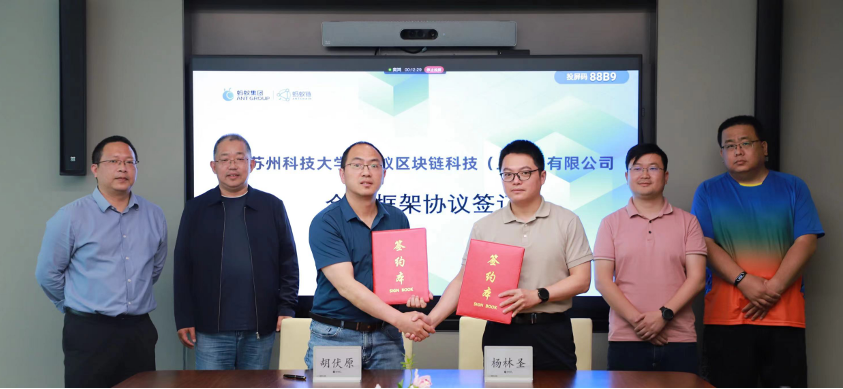 双方就产学研合作展开具体交流,并与蚂蚁集团全资子公司蚂蚁区块链科技(上海)有限公司签订“苏州科技大学&蚂蚁区块链科技(上海)有限公司”进一步深化合作协议,将在区块链人才培养、平台与实验室建设、产学研合作等方面展开合作,共同探索区块链特色专业建设和“区块链+”人才培养路径。