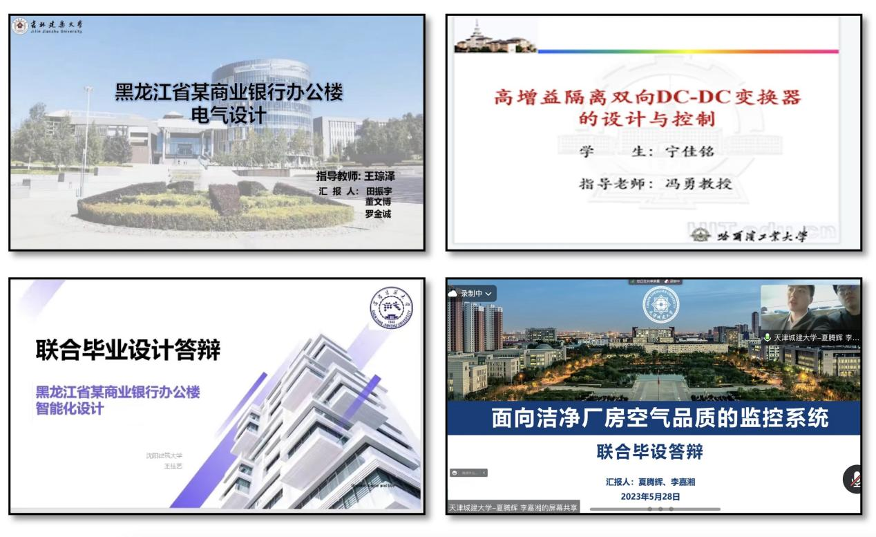 本届毕业设计题目分为建筑电气与建筑智能化“工程设计”和“应用研发”两大类,共计10个题目,其中部分题目由业内著名企业提供。2023年多校联合毕业设计答辩会分8个小组同时进行,经过答辩组各位老师的共同努力,多校联合毕业设计答辩于28日当天顺利完成。