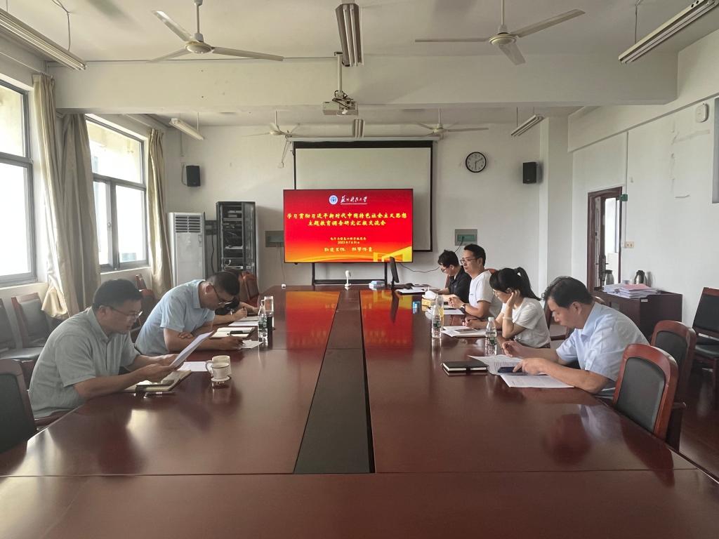 召开学习贯彻习近平新时代中国特色社会主义思想主题教育院领导班子成员调查研究汇报交流会,校长顾菊平线上列席指导。全体院领导做调研成果汇报交流,院党委书记章鸣主持会议,全体党委委员参加。