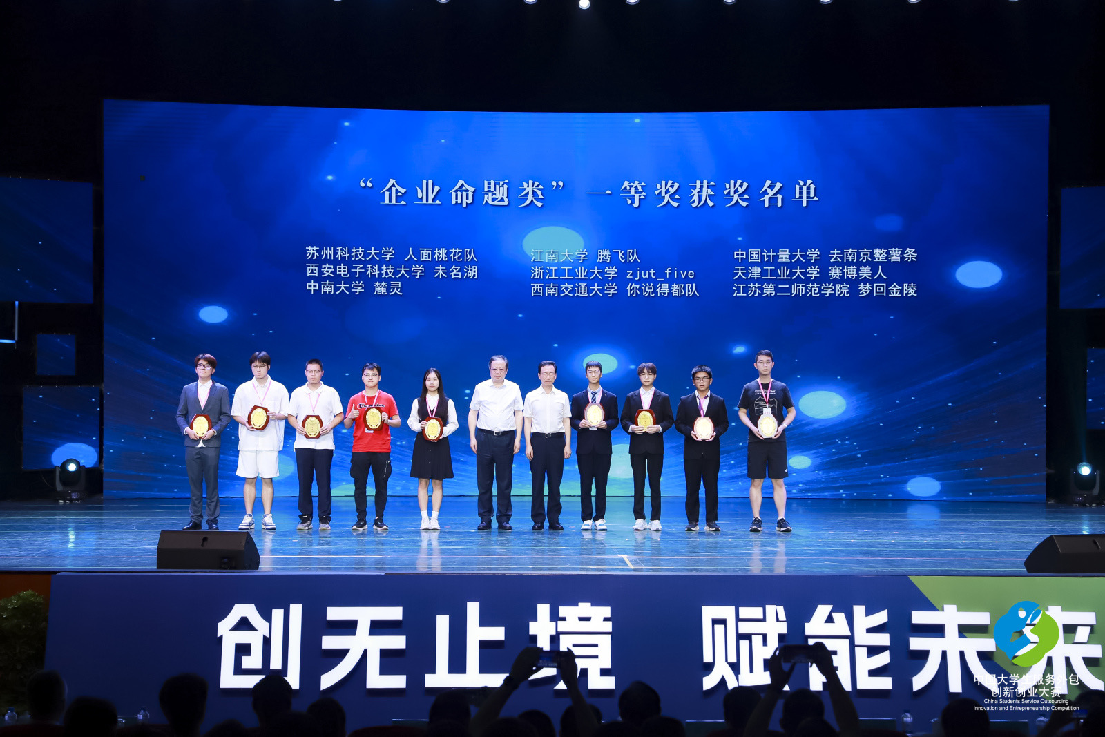 学生团队经过线上评审、区域赛决赛,全国赛决赛等环节的角逐,共斩获全国总决赛一等奖1项、三等奖2项;其中一等奖作品是由顾敏明、胡伏原老师指导,练汪洋、吕天培、贾雨欢、孙艺鸣、魏克杰同学参赛的“亿面智识”作品;三等奖作品是由王蕴哲、石颉指导,戴富强、夏清荷、封佳宁、陈梦婷、祝高敏同学参赛的“智检”作品以及由顾敏明、邱劲指导,刘冰洁、郑和枫、胡恩、季正昊、吉鸿瑶同学参赛的“云聚办公”作品。