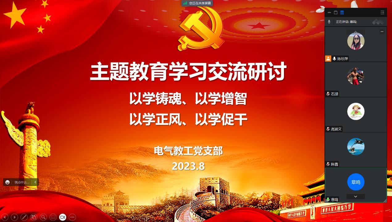 电气教工党支部开展了“以学铸魂、以学增智、以学正风、以学促干”的主题教育学习及交流研讨,会议由支部书记陈珍萍主持,通博娱乐