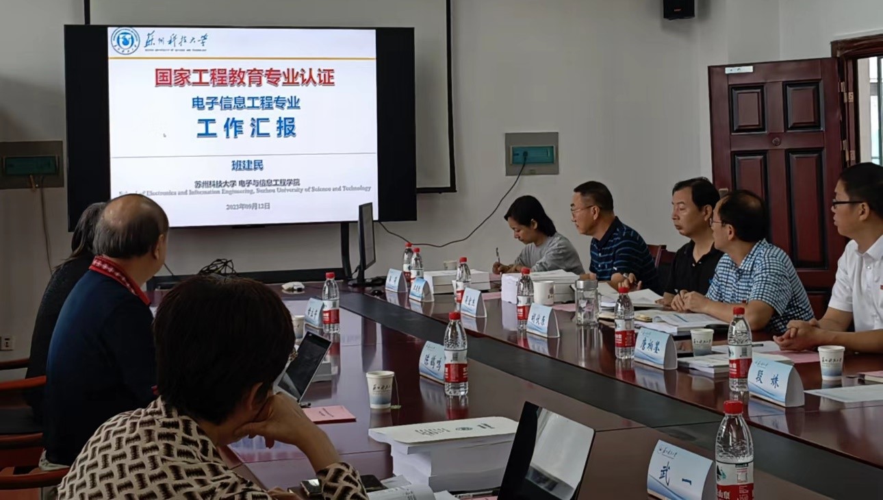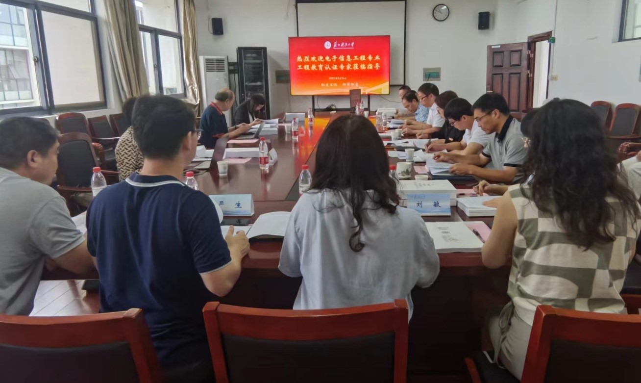 领导、电子信息工程专业系主任、骨干教师、辅导员等参加了会议,见面会由教务处处长段姝主持,陈鹤鸣教授做为考查组组长主持预认证现场考查工作,系主任班建民就自评自建成效进行了专业自评报告补充说明。
