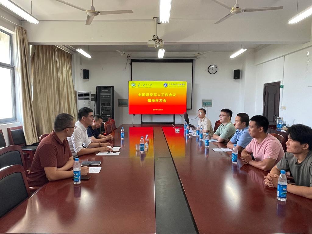 戴世宇传达了习近平总书记对退役军人工作作出的重要指示。孙铭、梁德强分别领学《关于支持退役军人创新创业指导意见》《关于加强就业困难退役军人帮扶工作的意见》《关于加强退役军人法律服务志愿工作的意见》等重要规范性措施文件。保卫处任宏结合自身入伍经历、工作经历分享退役军人对国家、对社会的重要意义,鼓励广大退伍学生永葆革命军人本色,坚定信念,爱国奉献,奋发有为,