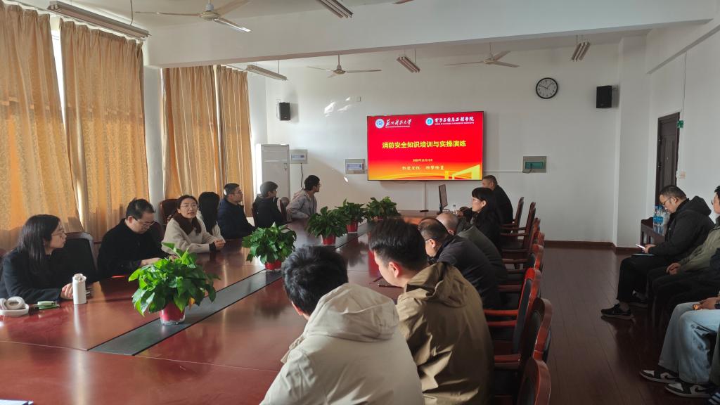 消防安全工作会议精神,要求深刻汲取近期国内几起重大火灾事故惨痛教训,全力做好安全教育和稳定工作。保卫处黄杰老师作了《消防安全知识培训与实操演练》的专题讲座,分别从典型火灾案例、消防常识、消防设施使用、火灾扑救及逃生几个方面开展了相关知识的培训。