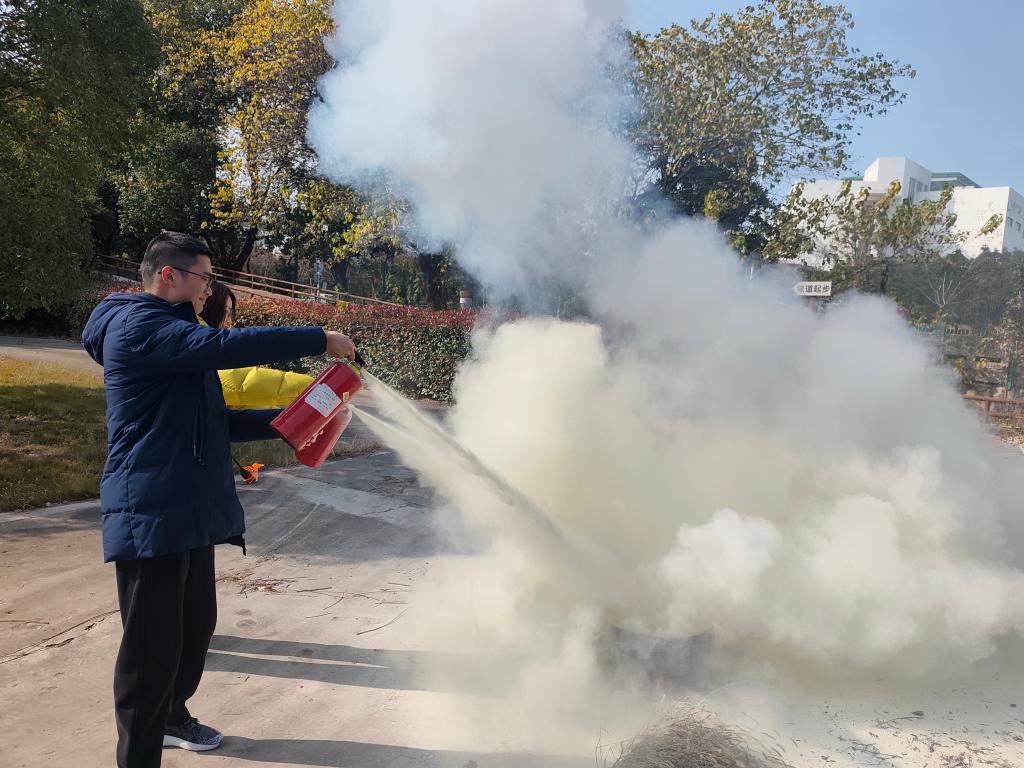 在灭火应急演练中,黄老师介绍了如何检查灭火器是否有效,如何正确使用灭火器、消火栓灭火,如何合理安排灭火器摆放位置以及突发情况的疏散逃生演练等。参加演练的师生经过实地操作,熟知了消防逃生路线,掌握了灭火器的使用方法和灭火技巧,增强了快速、安全处理突发事件的能力。
