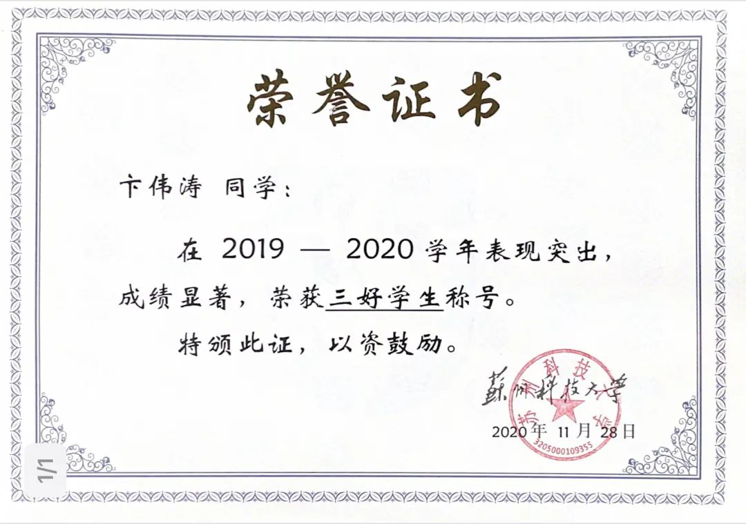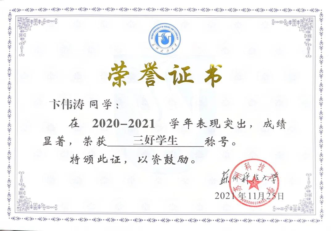 己亥之秋,他与苏科相遇,满怀热爱,志在四方。他常怀青衿之志,将“致远至恒,务学悟真”的校训深深根植于心,多学多问多做,不断提升自己的理论基础,就如同荒芜的土地迎来了第一缕晨曦,循着阳光,开始感悟大学、人生的真谛。