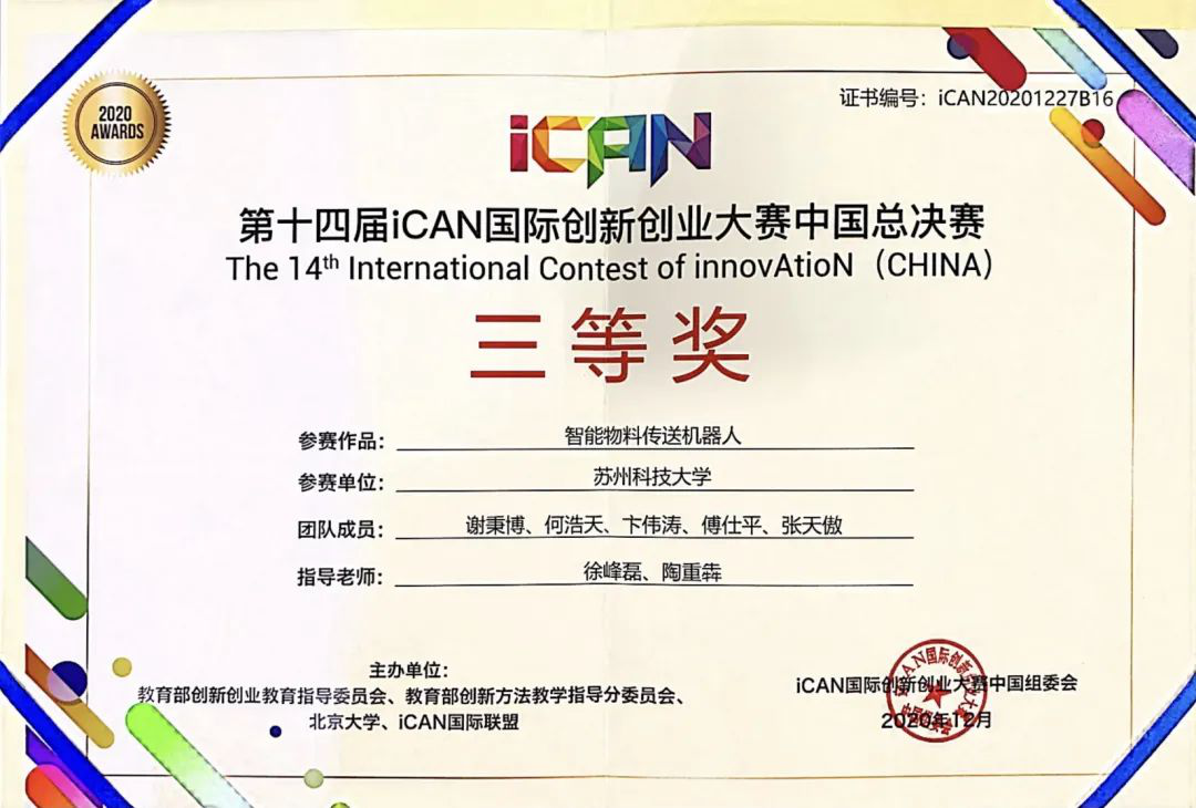 他深知机会不是等来的,是自己要去争取的,他也清楚只有足够的成果才能获得顶尖赛事的入场资格,因此他面对所有有机会参加的竞赛,都踊跃报名,尽力而为,不在乎一时的成败,只为积攒经验和底气,在将来收获更丰硕的果实。在参加iCAN全国大学生创新创业大赛时,他很荣幸成为了小组负责人,为了不负众望,他合理分配任务,让每位成员都能尽己所长。不论是产品创意设计和开发、项目计划书的写作完善还是准备比赛答辩,一切都在有条不紊的进行着。虽然过程中遇到了很多困难,但在小组的积极交流以及通力合作下都逐一解决,最终小组在iCAN全国大学生创新创业大赛总决赛中荣获全国二等奖的佳绩。