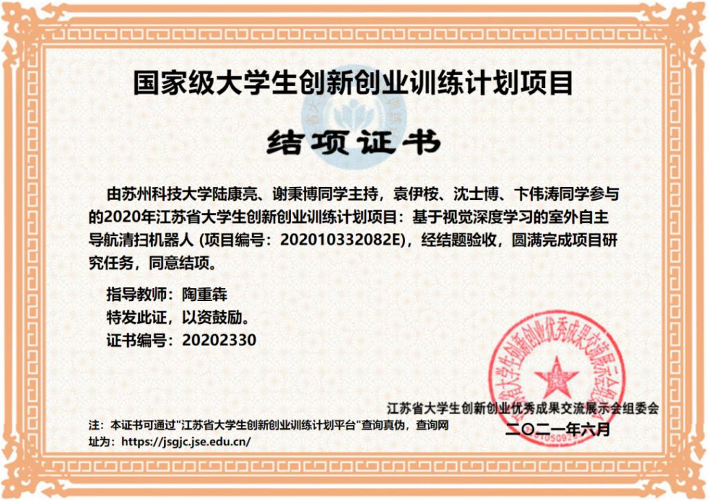 电子信息工程专业2019级本科生。曾获2021RoboCup机器人世界杯中国赛国家级二等奖、2021年iCAN全国大学生创新创业大赛总决赛国家级二等奖、第十四届iCAN国际创新创业大赛中国总决赛三等奖、第十一届江苏省大学生机器人大赛省级二等奖、第十届全国大学生电子商务“创新、创意及创业”三创赛省级三等奖;连续多次获校综合奖学金、三好学生等荣誉;主持、参加两项国家级大学生创新创业训练计划项目。